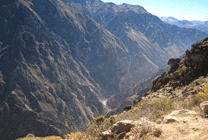 Salida en servicio compartido en dirección del Cañón del Colca. Parada en la Cruz del Condor, lugar en donde se encuentra el mirador desde el cual se aprecia un impresionante panorama: un abismo de 1200m de profundidad, al fondo del cual serpentea el río Colca; y de otro lado, las paredes del cañón que sobrepasan los 3000m. con una vista espléndida de los las terrazas andinas del valle del Colca. Si es posible apreciaremos en su hábitat al ave emblemática de los andes, el Cándor, el más grande rapaz del mundo cuya envergadura llega a alcanzar los 3 metros. Los cóndores aprovechan las corrientes ascendentes de aire caliente para planear.