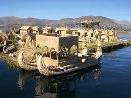 Visita a las Islas Flotantes de los Uros. En estas islas fabricadas de totora, habitan familias que se dedican principalmente a la pesca y a la caza. Su supervivencia depende de los recursos del lago. La totora es utilizada en la fabricación de las islas, de las embarcaciones y en la artesanía.