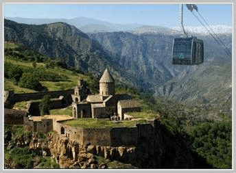 Desayuno en el hotel. Check-out del hotel . Visita del Monasterio-fortaleza de Tatev (ss. 9-13), donde se puede llegar en el teleférico más largo del mundo. Almuerzo en el restaurante. Salida hacia la región de Gegharqunik. Paso de Selim (2410 m sobre el nivel del mar). Caravanserai de Selim (s.14). Llegada al Lago Seván.