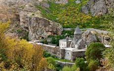 Monasterio de Khor Virap, en un marco paisajístico impresionante con el telón del fondo del gigantesco Monte Ararat. Aquí se erigió el Monasterio, porque es donde se encuentra el lugar en el que San Gregorio “el Iluminador” permaneció cautivo durante trece años (para aquellos que lo deseen, es posible bajar por una empinada escalera hasta la mazmorra en la que permaneció, preso del rey pagano Tiridades III. Después de esta interesante visita, continuación hasta el Monasterio de Noravank, obra maestra de los ss. 13-14, levantado en un promontorio, dentro de un gran cañón natural de grandes dimensiones. Almuerzo en el restaurante. Por la tarde, regreso a Yereván. Cena y alojamiento en Yereván.