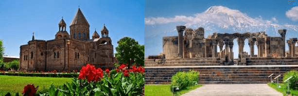 Catedral de Echmiadzín – Es la primera iglesia cristiana del mundo construido en los años 301- 303 por el fundador y el primer patriarca de la Iglesia Apostólica Armenia Gregorio el Iluminador.
