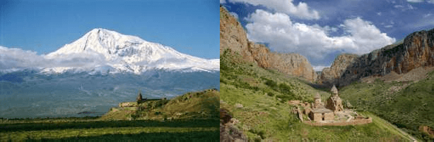 Khor-Virap – El Monasterio de Khor Virap se encuentra en la frontera de Armenia con Turquía, entre las ruinas del antiguo capital de Armenia, Artashat. Aquí estuvo encerrado el promotor de la Iglesia Armenia, Gregorio el Iluminador hasta que el cristianismo pasó a ser la religión oficial del país en el año 301. Es un lugar de peregrinación para los armenios. Desde el Monasterio se abre una vista espectacular al Monte Ararat, símbolo nacional de Armenia que actualmente está fuera de sus fronteras.