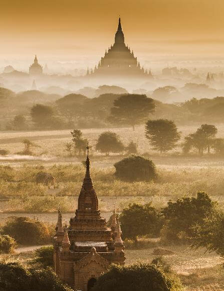 Culminaremos el día disfrutando del atardecer desde lo más alto de alguno de los más de 4000 templos de la llanura de Bagan. Una imagen que quedará grabada en la memoria del viajero.